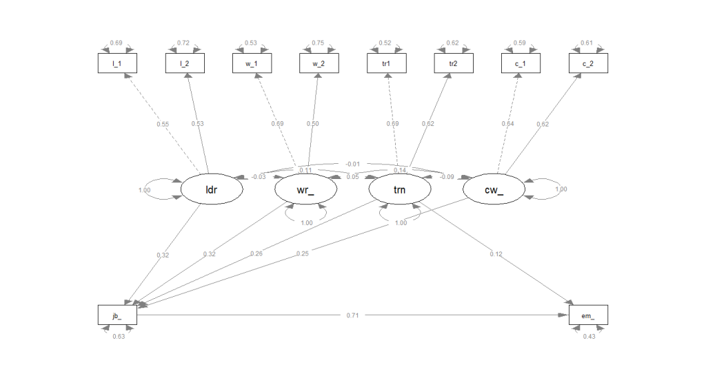- Evaluate the underlying relationships between leadership quality, workplace environment, training efficacy, and coworker relationships.